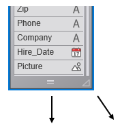 Cuando añade campos a una tabla o cuando disminuye el tamaño de la tabla, puede haber más campos en la tabla de los que la imagen puede mostrar. En este caso, 4D muestra automáticamente un cursor que permite desplazarse por la lista de los campos visibles: