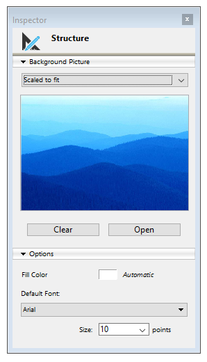 La ventana del editor de estructura dispone de propiedades específicas que puede configurar vía el Inspector.