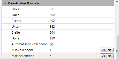 Bei "Zeile" wird die Höhe unter Berücksichtigung der Schriftgröße der betreffenden Zeile berechnet.