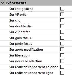 Evénements 4D standard (voir Form event code) | Evénements 4D View Pro spécifiques |