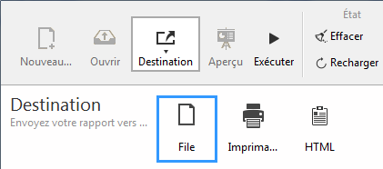• Vous pouvez également utiliser le bouton Aperçu à tout moment (disponible uniquement avec la destination "Imprimante") afin de prévisualiser l'exécution de votre état.
