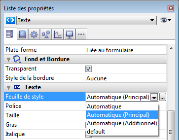 4D propose plusieurs feuilles de style automatiques, disponibles dans la Liste de propriétés :