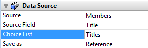 Para variáveis, campos e colunas list box, uma lista exigida é também definida para o objeto (ambas opções devem usar geralmente a mesma lista) de maneira que apenas valores da lista podem ser digitados pelo usuário.