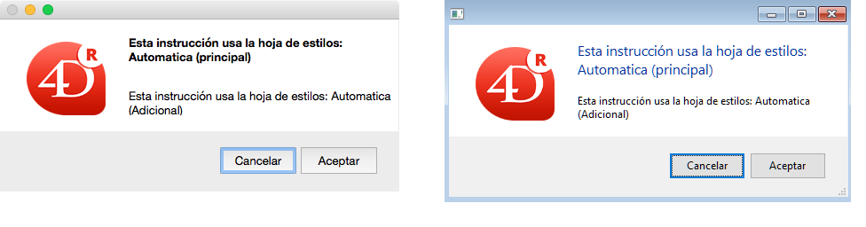 Estas hojas de estilo están destinadas principalmente para el diseño de cajas de diálogo. Se refieren a estilos de fuente utilizados, respectivamente, para el texto principal y la información adicional en sus ventanas de interfaz. Aquí están las cajas de diálogo típicas (OS X y Windows) utilizando estas hojas de estilo: