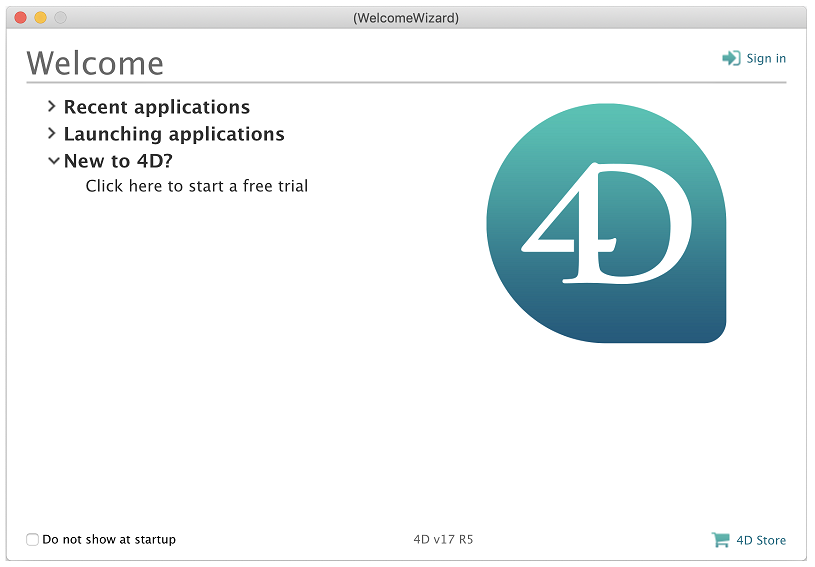 Após ter instalado e registrado sua versão de 4D como se descreve no Guia de instalação, você pode iniciar a aplicação.