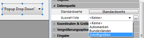 Sie weisen "Schriftgrößen" als Auswahlliste für das Objekt PopUp-Menü/DropDown-Liste zu: