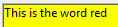| <span style="font-family:'Segoe UI';font-size:9pt;text-align:left;font-weight:normal;font-style:normal;text-decoration:none;color:#0000FF;"><span style="background-color:#FFFFFF">This is the word red</span></span>