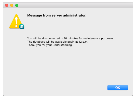 Nota: puede también desconectar directamente los usuarios seleccionados sin mostrar la caja de diálogo de confirmación: para hacer esto, presione Alt (Windows) u Opción (Mac OS) mientras presiona el botón Desconectar.