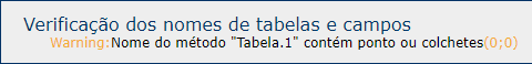 Para ajudar aos desenvolvedores a colocar suas aplicações conforme com esta regra, a ação Verificar a aplicação busca automaticamente a presência destes caracteres não desejados nos nomes de variáveis, tabelas, campos e métodos. Se forem detectados estes caracteres, o CSM informa sobre "anomalías" e o arquivo de histórico contém as advertências apropriadas: