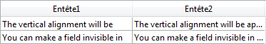 A noter que, quelle que soit la valeur de l’option Retour à la ligne, la hauteur des lignes n’est pas modifiée. Si le texte avec retours à la ligne ne peut être affiché en totalité dans la colonne, il est tronqué (sans ellipse). Dans le cas des list box n’affichant qu’une ligne, seule la première ligne est affichée :