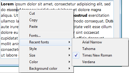 El comando SET RECENT FONTS modifica la lista de fuentes recientes que aparecen en el menú contextual de las "fuentes recientes" .
