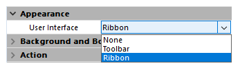 タブ | アクション | リボン型インターフェース | ツールバー型インターフェース |
