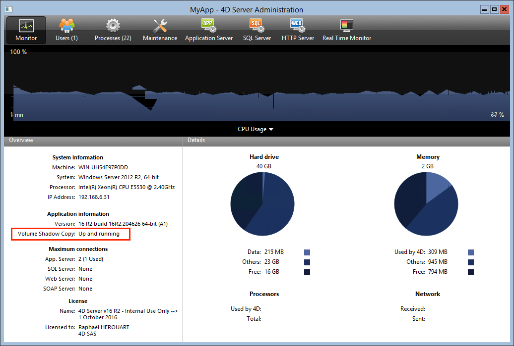 Nota: la gestión 4D VSS se maneja a través de una aplicación separada, ya que este programa debe ejecutarse utilizando privilegios de administración.
