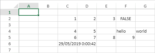 value | Entier long, Réel, Booléen, Texte, Date, Null | Valeur de la cellule (excepté - time) |