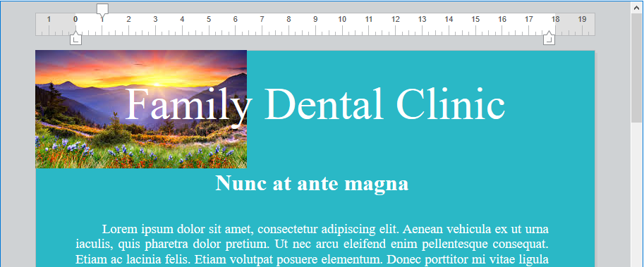 ピクチャーをリサイズし、中央揃えにしてヘッダーにアンカーして追加したい場合を考えます: