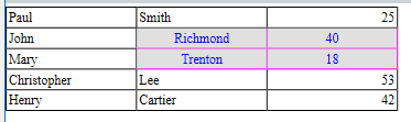 $wpRow3:=WP Table append row($wpTable;"Mary";"Trenton";18)