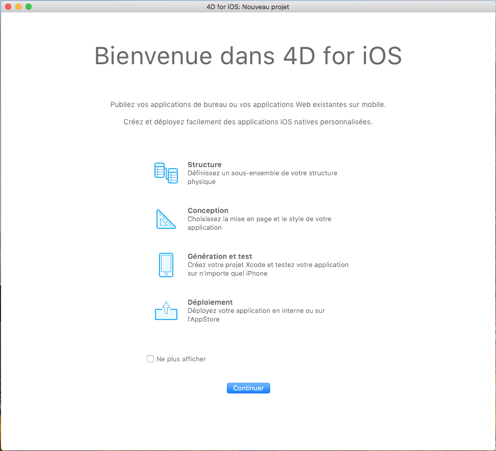 Pour commencer à utiliser 4D for iOS, nous vous recommandons de parcourir la page FAQ qui fournit un aperçu rapide.