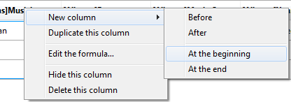1. カラムヘッダーをダブルクリックあるいは右クリックし、コンテキストメニュー内のフォーミュラを編集...メニューを選択します。