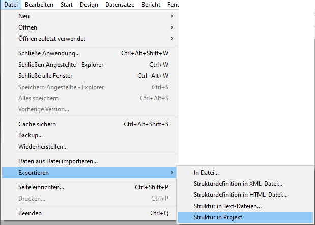 Wählen Sie Datei > Exportieren > Struktur in Projekt.