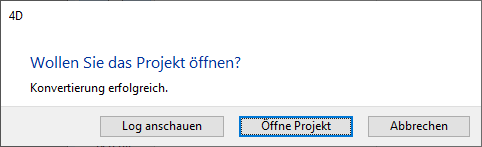 Hinweis: Gibt es auf derselben Ebene wie Ihre .4db Datei bereits einen Ordner "Project" (z.B. weil bereits eine Konvertierung durchgeführt wurde), wird er ersetzt.
