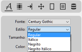 Os elementos disponíveis no menu Estilo variam em função da fonte selecionada: