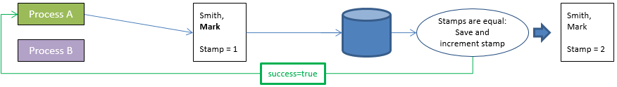 - Cuando los valores coinciden, la entidad se guarda y el valor de sello interno se incrementa.