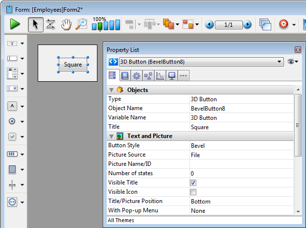 フォーマット済みの四角 3D ボタンを追加します (Mac のみ)。プロパティリストにて、プロパティを変更できます。
