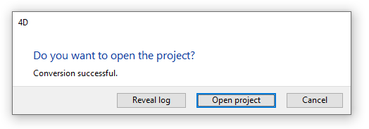 Abrir proyecto: reinicia la aplicación 4D y carga el proyecto convertido.