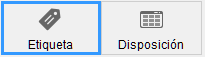 El editor de etiquetas incluye una barra de botones y dos páginas, la página Etiqueta y la página Disposición, cada una identificada por un botón en la parte superior de la caja de diálogo. Utilice la página Etiqueta para especificar el contenido de la etiqueta y la página Disposición para definir el tamaño y la posición de las etiquetas en la página.