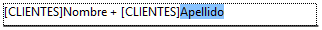 • Puede concatenar dos campos soltando el segundo campo en el primero. Se separan automáticamente por un espacio. Si mantiene presionada la tecla Mayús, se separan por un retorno de carro. Esto le permite crear, por ejemplo, etiquetas de direcciones utilizando varios campos superpuestos *Dirección1, Dirección2, etc.), sin generar una línea vacía cuando una dirección requiere sólo un campo.