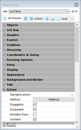 • When the “Draggable” and “Movable Rows” properties are both set for a List box object, the “Movable Rows” property takes priority when a row is moved. Dragging is not possible in this case.