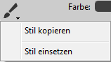 Die Schaltfläche Copy/Paste kopiert den auf den Text angewandten Stil. Haben Sie ausgewählten formatierten Text kopiert, wird im DropDown-Menü automatisch der Eintrag "Stil einsetzen" hinzugefügt, so dass Sie die Stilelemente an anderer Stelle wieder anwenden können. Das funktioniert jedoch nur, wenn die Formatierung auf die ganze Textauswahl angewendet wird.