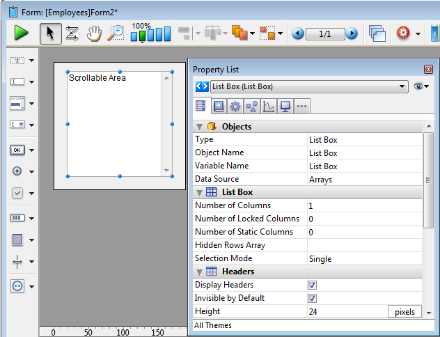 For more information about using scrollable areas in forms, refer to the Overview section for list boxes.
