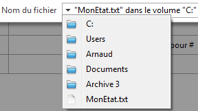 Une fois l'emplacement défini, vous pouvez le visualiser sous forme de menu en cliquant dans la zone. A noter que cette option ne génère aucun fichier, elle stocke uniquement un chemin.