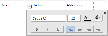Sie können beim Anlegen des Schnellberichts verschiedene Schriftarten, -größen, -stile, die Ausrichtung, sowie Farben für Schrift und Hintergrund festlegen. Das ist möglich für Text, Daten und Summenberechnungen in Zeilen, Spalten oder Zellen.