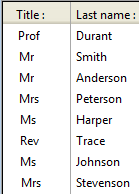 Usted desea utilizar un campo "Título" para las personas: Sr., Sra., Dr., Monseñor, etc. Para ello, se crea un campo de tipo entero largo llamado "Título". Se define una lista de opciones (llamado "Títulos") que contiene todos los títulos posibles y se asocian al campo.
