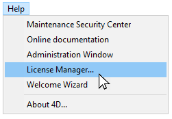 4D または 4D Serverアプリケーションのヘルプメニューからライセンス更新...を選択し、更新ボタンをクリックしてください: