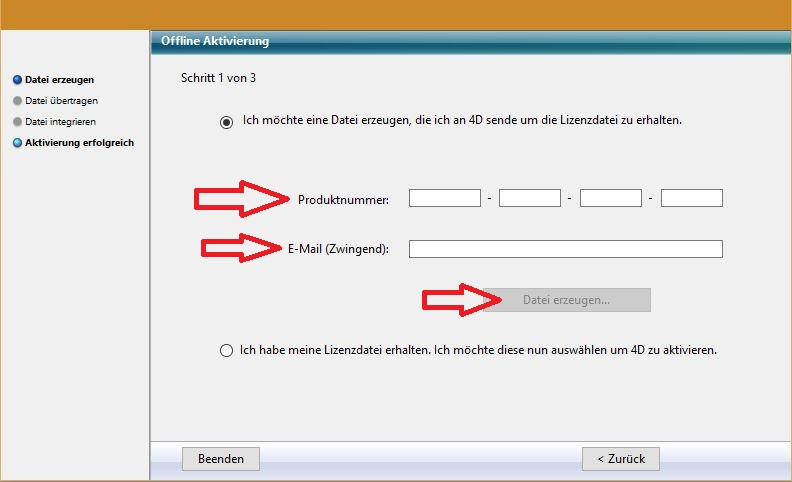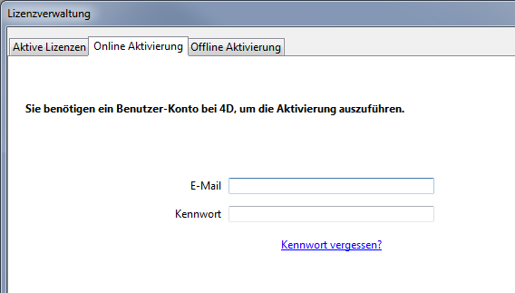 Hinweis: Zur Aktivierung Ihrer 4D Produkte benötigen Sie einen Internet-Zugang und eine E-Mail Adresse.