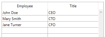 The column contents are evaluated for each element of the collection and referenced with the data source expression, This.Employee, as shown below: