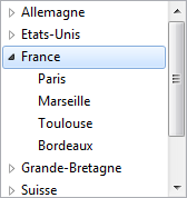 Les listes hiérarchiques peuvent être saisissables. Si un élément d’une liste hiérarchique est modifiable, l’utilisateur peut l’éditer en utilisant la combinaison Alt+clic (Windows) / Option+clic (sous Mac OS), ou en effectuant un clic long sur le texte de l’élément. Si vous remplissez une liste hiérarchique à l’aide d’une énumération créée dans l’éditeur d’énumérations, la propriété “modifiable” des éléments de la liste est définie par l’option Elément modifiable de l’éditeur d’énumérations. Pour plus d’informations, reportez-vous à la section Définir les propriétés des énumérations.