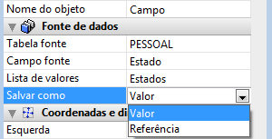 Para converter um campo em uma variável ou vice-versa, selecione o objeto e selecione Campo ou Variável da lista Tipo na Lista de propriedades, (tema “Objetos”). A Lista de propriedades é atualizada para mostrar as propriedades do novo tipo de objeto. O nome de objeto, o método de objeto e suas propriedades (tamanho, editável, etc.) são conservadas.