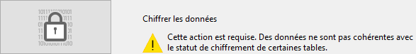 Cela signifie que le statut Chiffrable défini pour au moins une table a été modifié et que le fichier de données n'a toujours pas été chiffré.