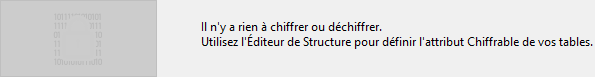 Si vous ouvrez la page sans paramétrer les tables comme étant Chiffrables, le message suivant s'affiche :