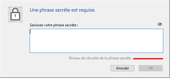 L'indicateur du niveau de sécurité peut vous aider à évaluer la sûreté de votre phrase secrète :