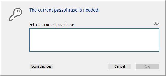 Click on Change your passphrase and re-encrypt data.