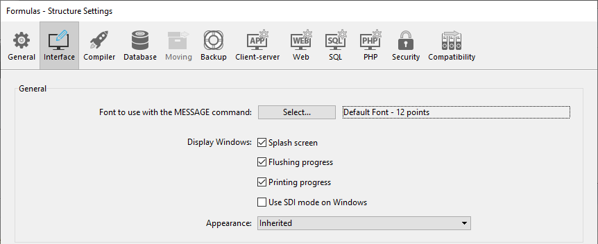 - Uso del modo SDI en Windows: cuando se selecciona esta opción, 4D habilita automáticamente el modo SDI (Single-Document Interface) en la aplicación fusionada si se ejecuta en un contexto soportado (ver Modo SDI en Windows).