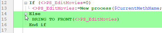 Resaltar bloques lógicos (nuevo en v16): cuando se selecciona, todo el código que pertenece a un bloque lógico (por ejemplo If/End if) se resalta cuando el ratón se coloca sobre el nodo expandido: Nota: el color resaltado se puede definir en la página "Colores".
