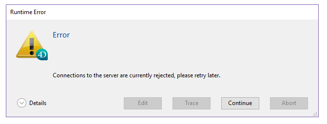 - Ningún nuevo cliente puede conectarse. Los clientes que intenten conectarse recibirán el siguiente mensaje: