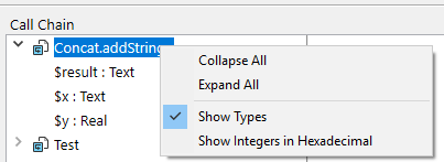 • Puede mostrar el tipo de parámetro seleccionando Mostrar tipos en el menú contextual: