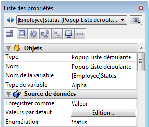 Pour associer un popup/liste déroulante à un champ ou une variable énuméré(e), il suffit de saisir directement le nom du champ ou de la variable dans la zone Nom de la variable de l’objet :